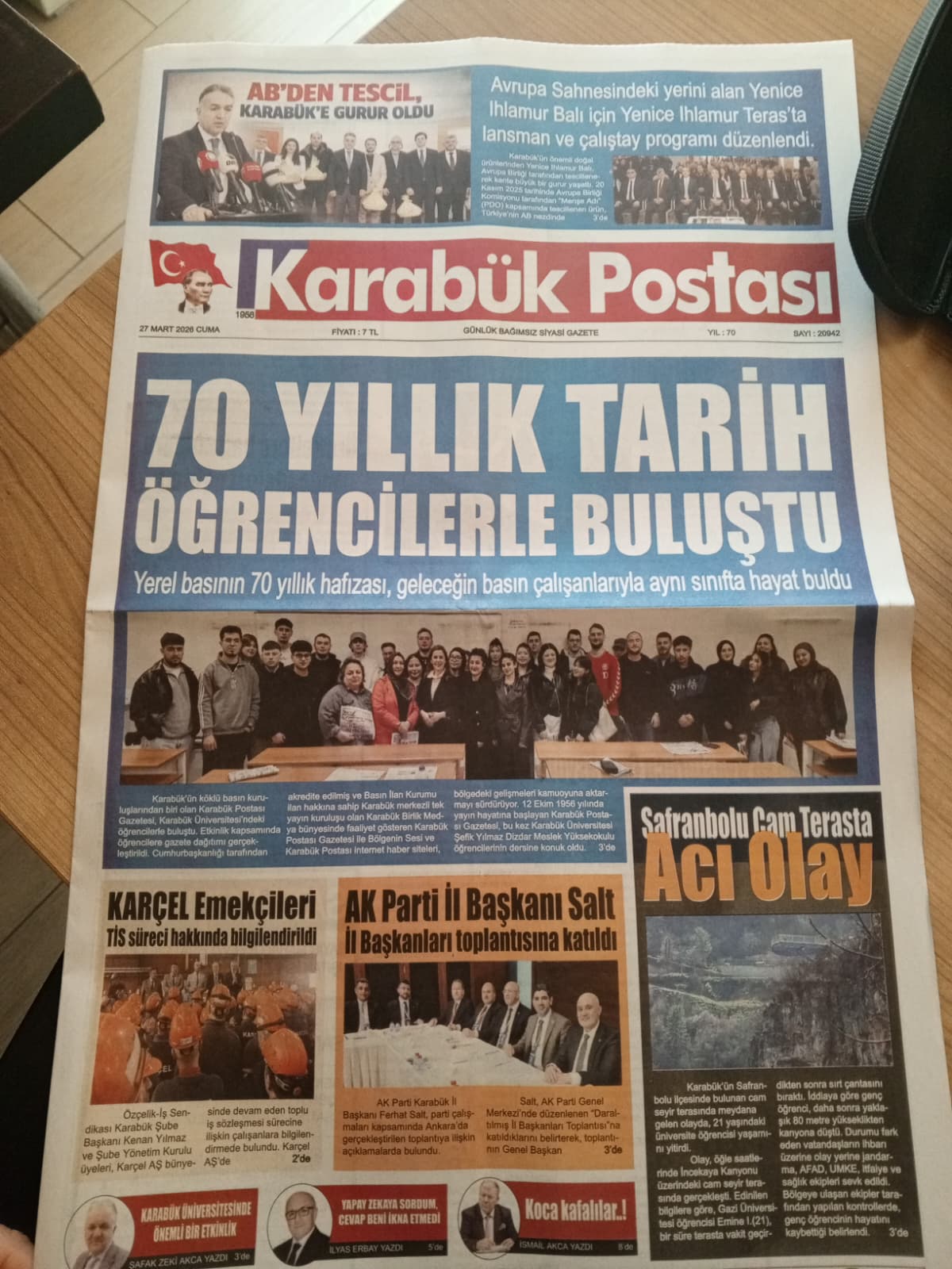 Etkinlik kapsamında öğrencilere Karabük Postası Gazetesi dağıtılırken, basılı gazeteciliğin önemi de vurgulandı. Ayrıca öğrencilere çikolata ikram edilerek etkinlik samimi bir atmosferde gerçekleştirildi.