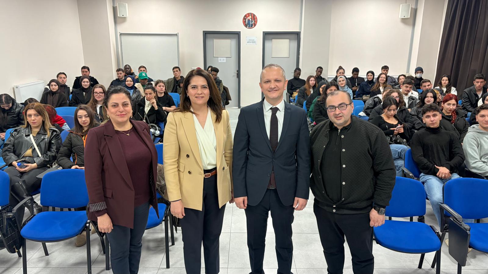İŞKUR İl Müdürü Sinan Karademir, İş ve Meslek Danışmanları ile üniversite yetkililerinin katılımıyla gerçekleştirilen etkinlik; Muhasebe ve Vergi Uygulamaları, İşletme ve Mimari Restorasyon programlarında öğrenim gören öğrencilerin katılımıyla yapıldı. Konferans, Dr. Öğr. Üyesi Hülya Özçağlar Eroğlu’nun yürüttüğü İnsan Kaynakları Yönetimi dersi kapsamında gerçekleştirildi.