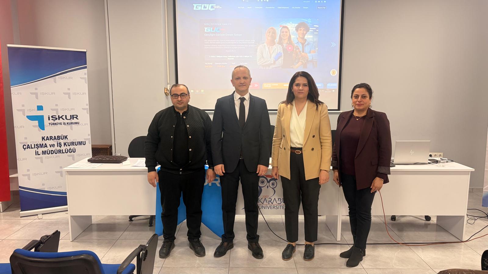 Karabük Üniversitesi Safranbolu Şefik Yılmaz Dizdar Meslek Yüksekokulu’nda, öğrencilerin kariyer gelişimlerine katkı sağlamak amacıyla “Gençliğin Üretim Çağı Projesi (GÜÇ) ve İŞKUR” konulu konferans düzenlendi.